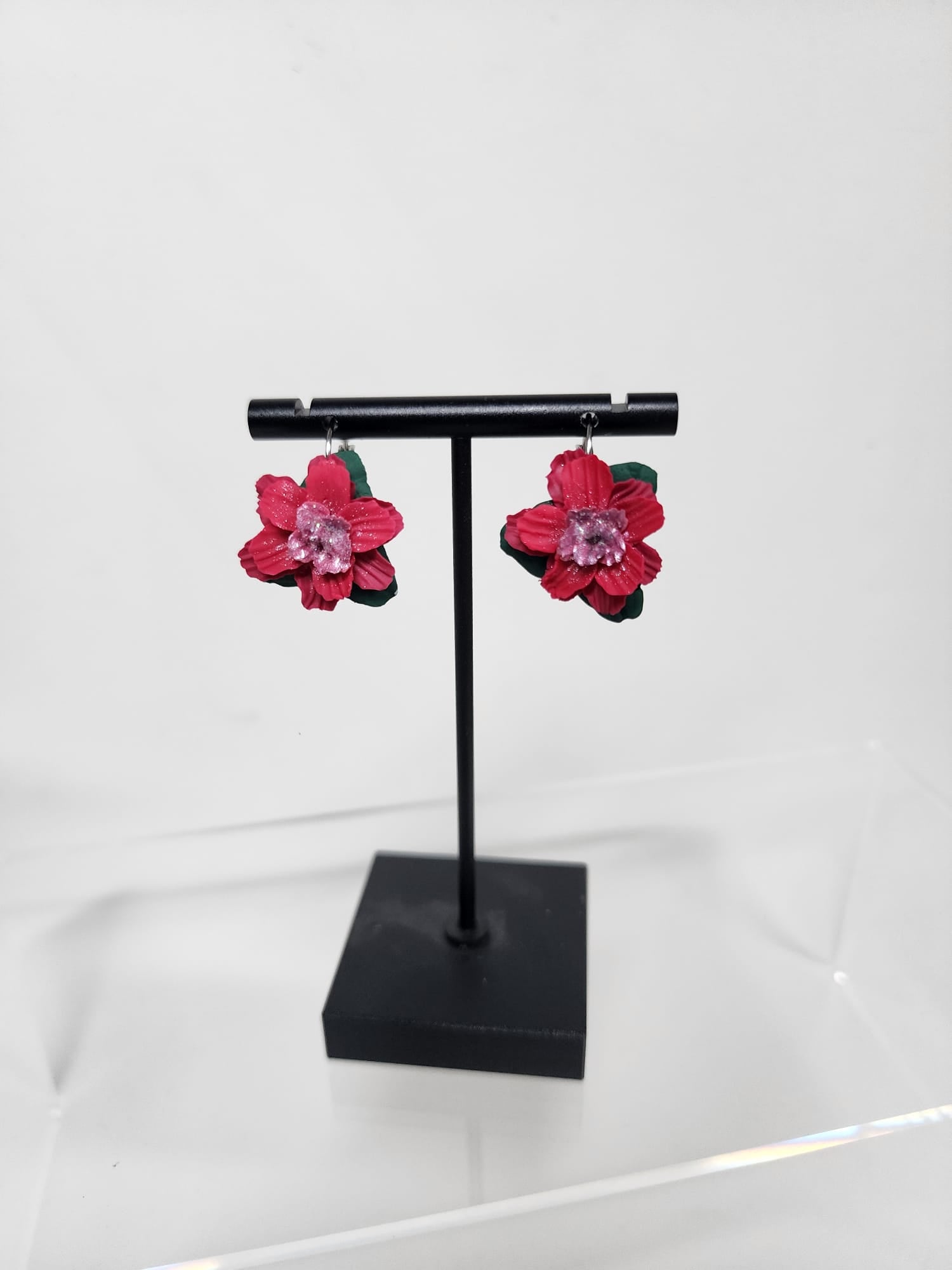 Ceramic earrings - red flowers